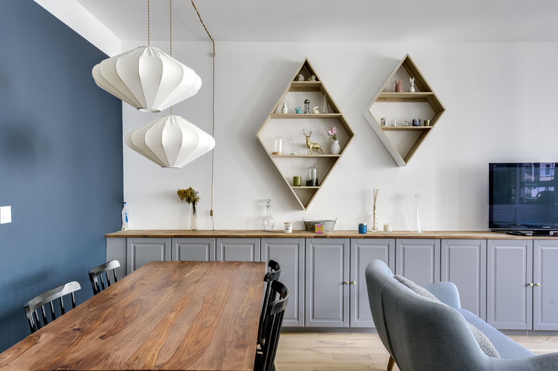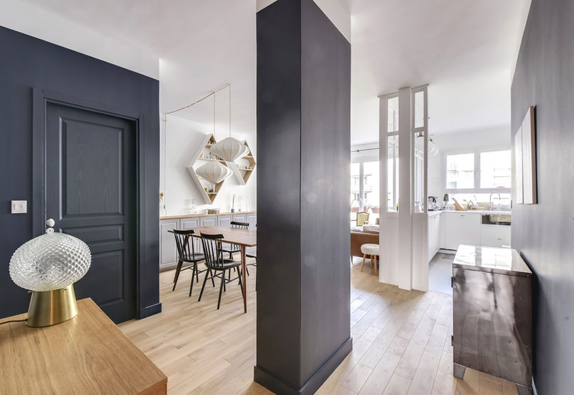Réorganisation et rénovation complète d'un appartement de 75m 2. Optimisation des espaces. Agrandissement des pièces et ajouts de nombreux rangements.